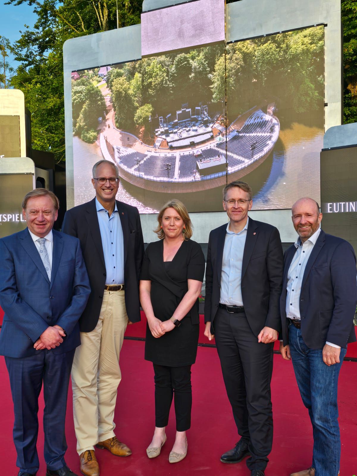 Trotz zahlreicher Herausforderungen haben die Stad Eutin, die Eutiner Festspiele und die Baufirmen es geschafft, um die knapp 2.000 Zuschauer fassende Tribüne am Ufer des Großen Eutiner Sees rechtzeitig fertigzustellen. Unterstützt wurde der Bau dabei auch aus Mitteln des Landes Schleswig-Holstein, dass zusätzlich zu seiner jährlichen Förderung einen Anteil an den Kosten getragen hat.
