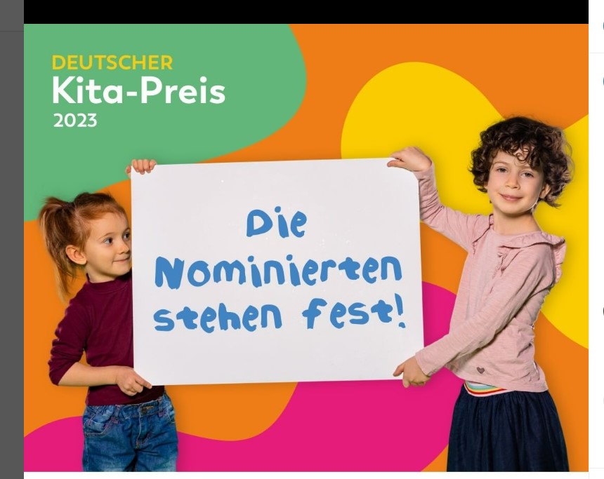 auf je 25.000 Euro freuen und den Zweitplatzierten winken jeweils 10.000 Euro Preisgeld. Der mit insgesamt 130.000 Euro dotierte Deutsche Kita-Preis wird im Mai 2023 verliehen. Bereits im Dezember werden die Finalisten bekanntgegeben.
